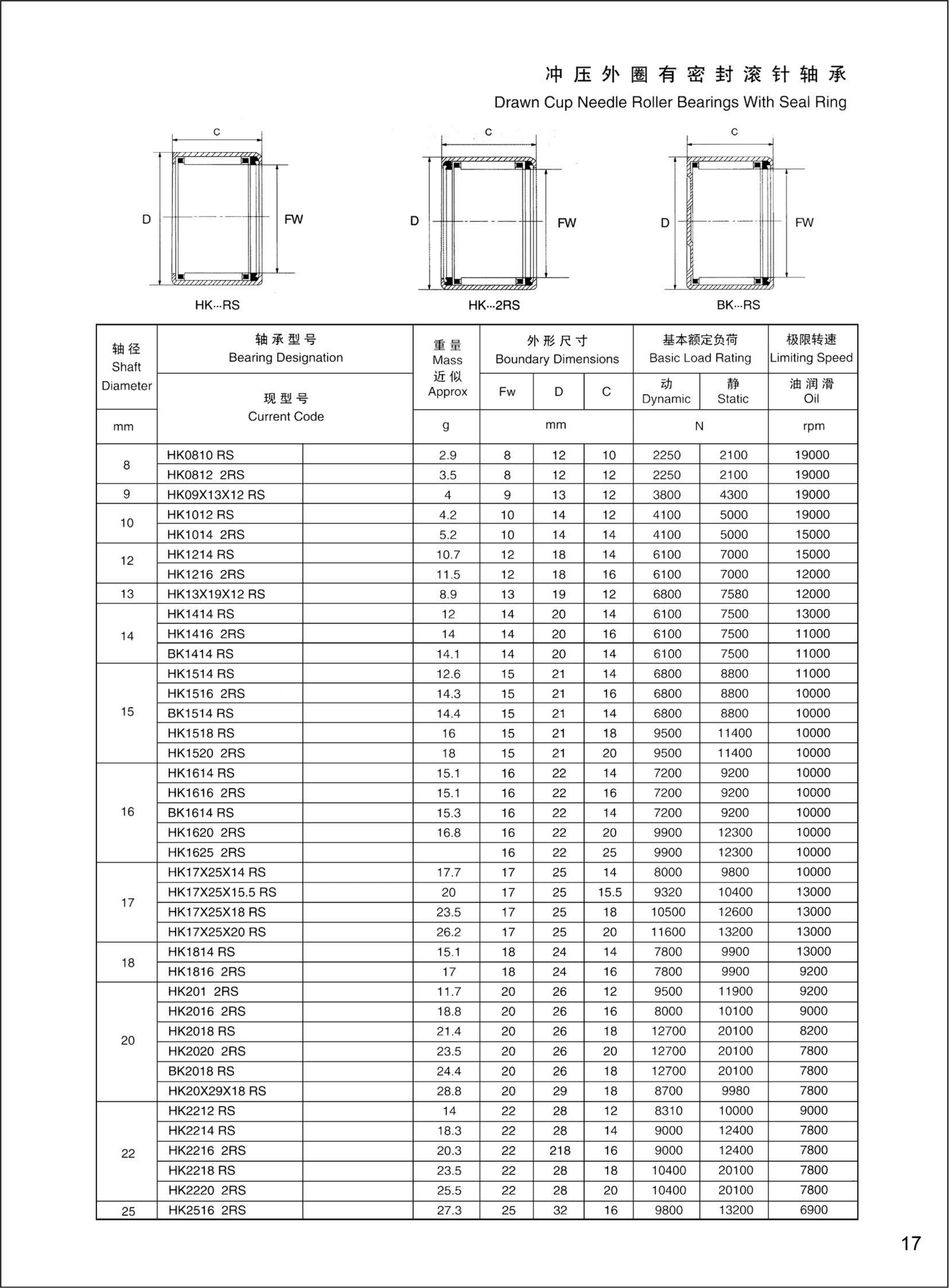 冲压外圈滚针轴承 >> HK