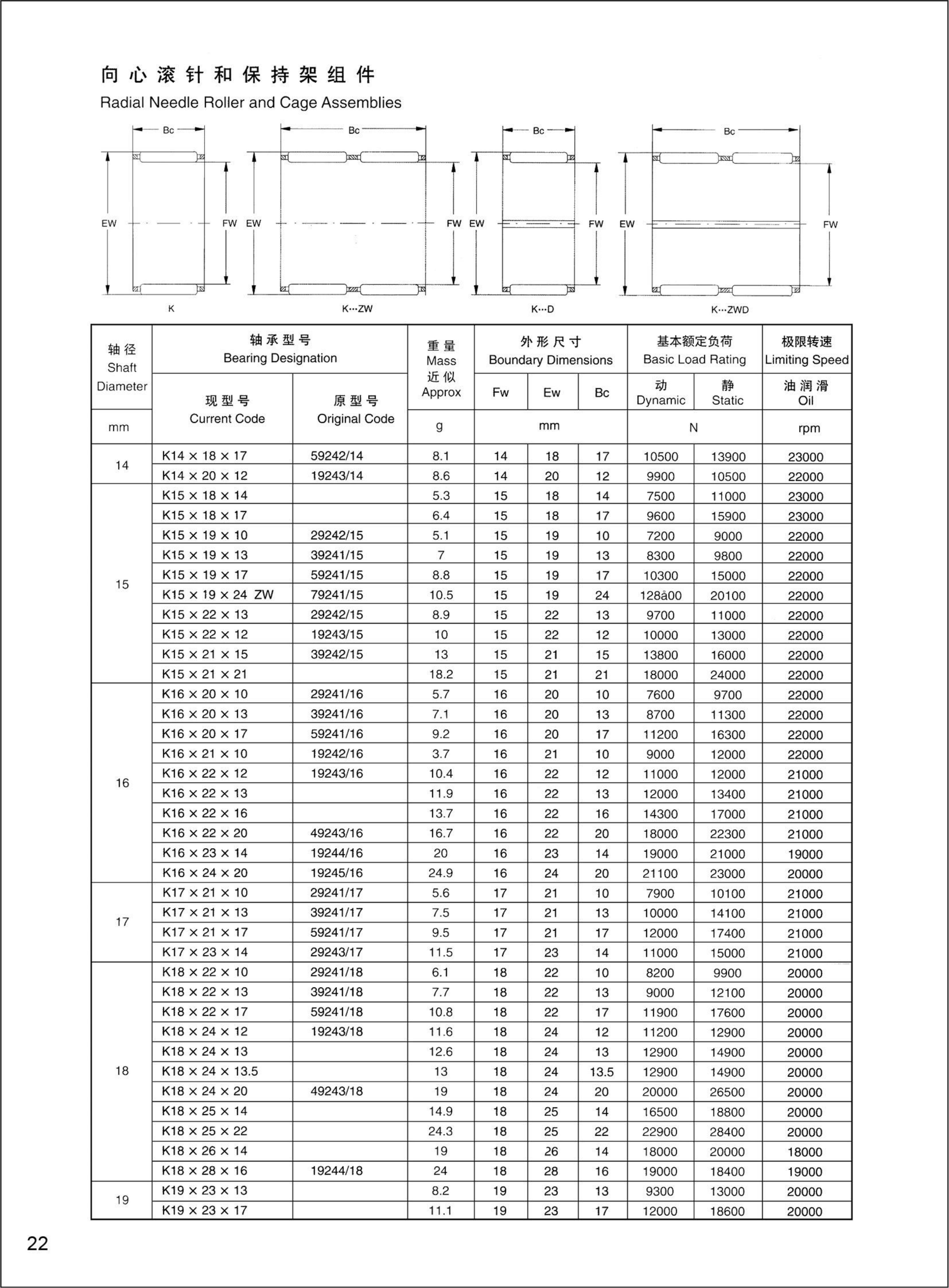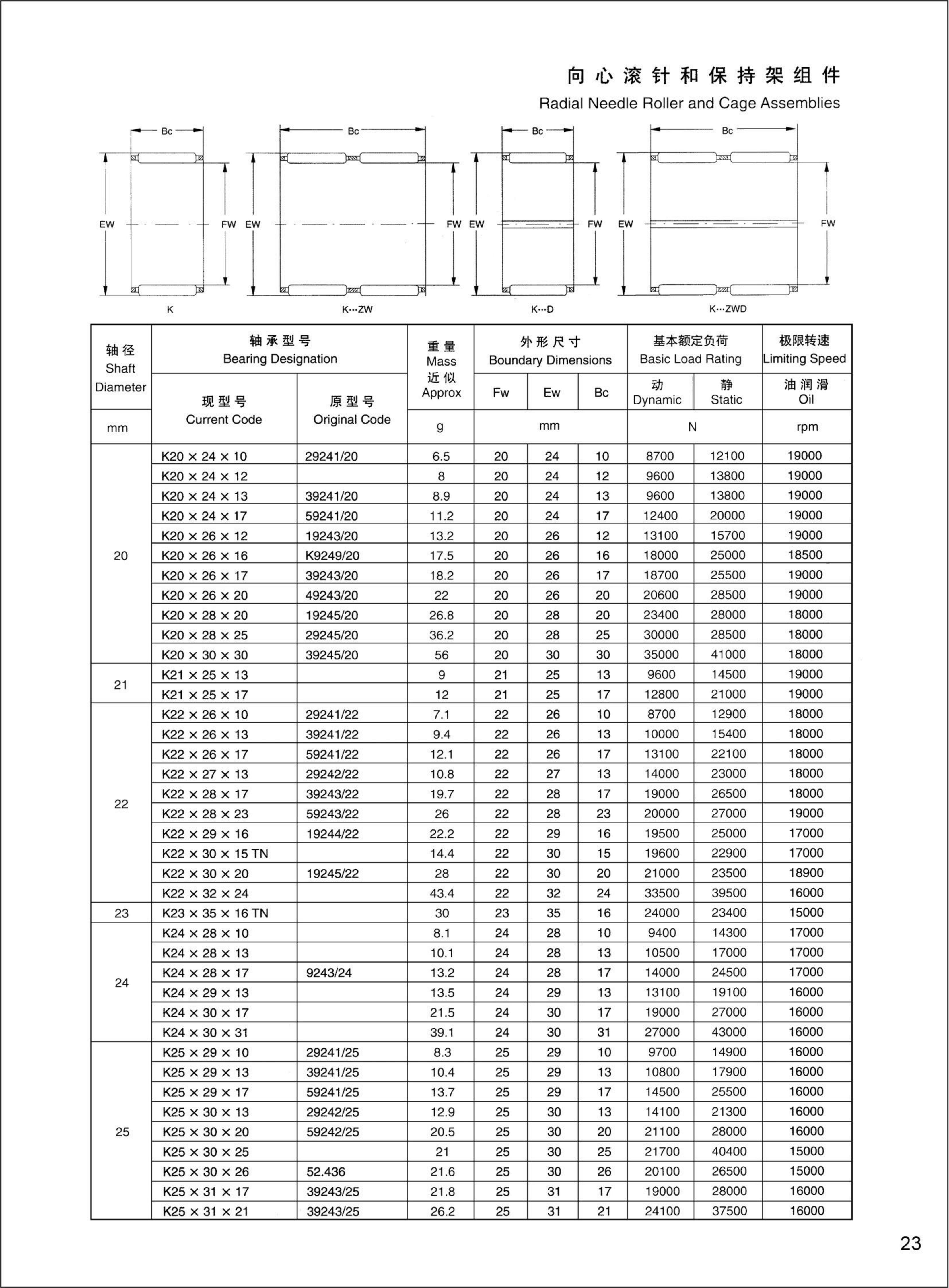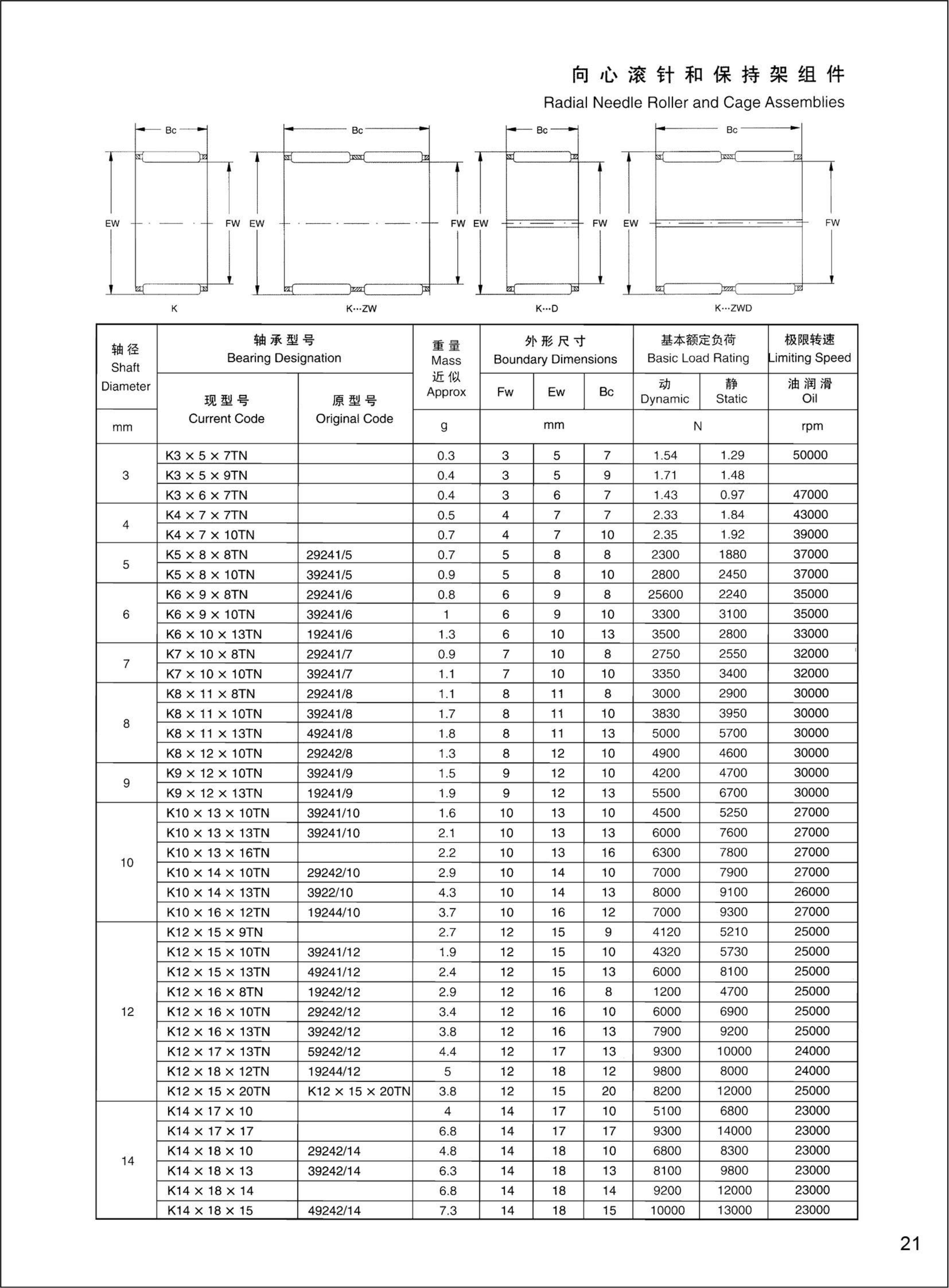 滚针和保持架组件 >> K